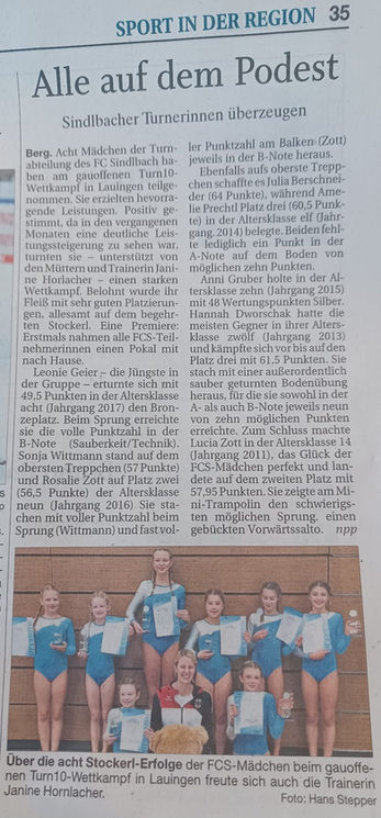 Am Sonntag 19.10. fuhren 8 Mädels der Turnabteilung des FC Sindlbach wieder einmal nach Lauingen zum Gauoffenem Turn10 Wettkampf im Turngau Oberdonau.